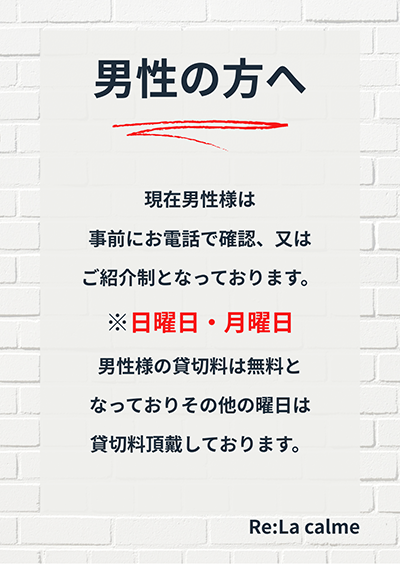 | 店名 | 女性のためのハーブサウナ専門店 Re:La calme |
